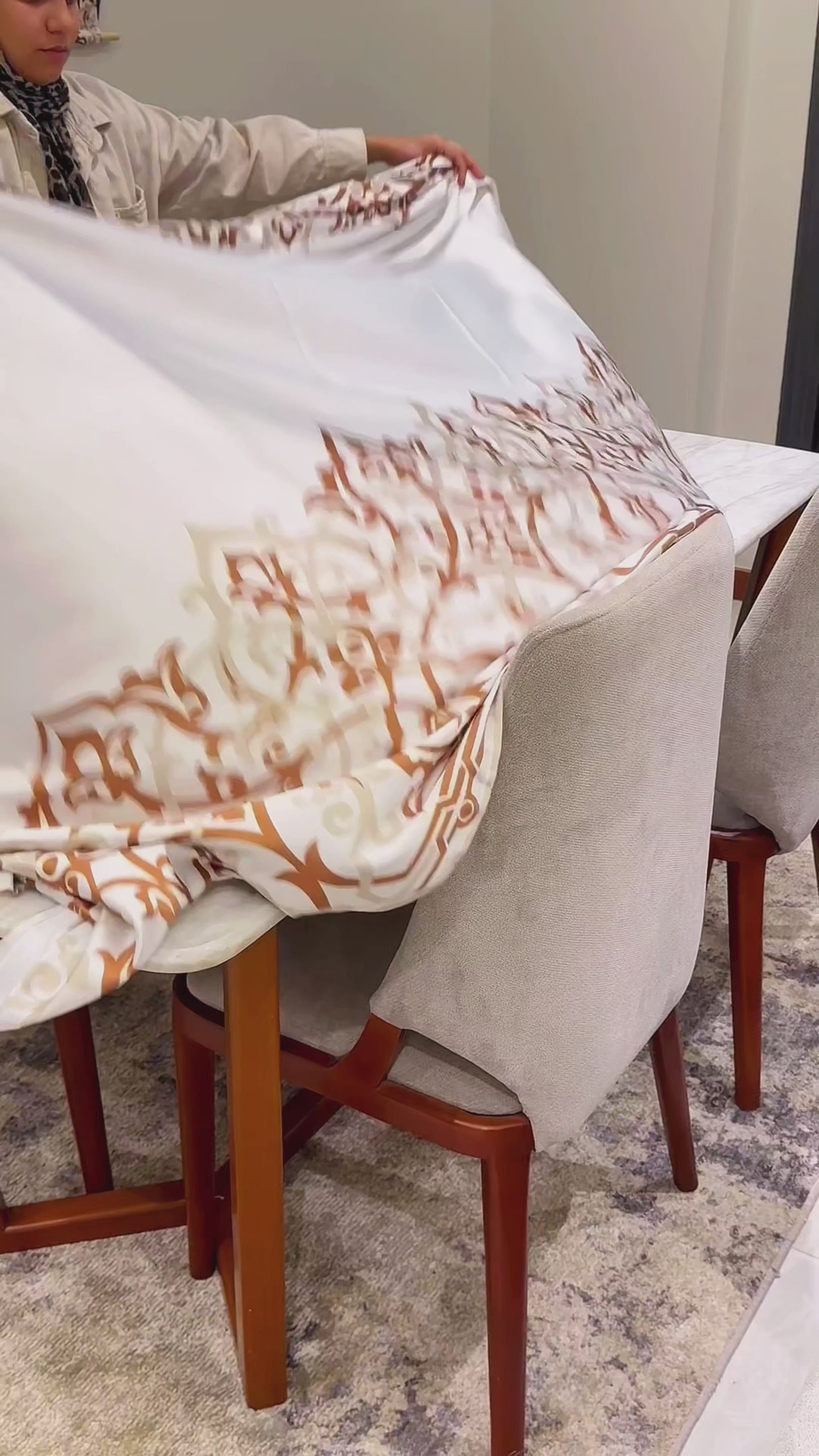 هذا المفرش ناعم، حريري الملمس، ولامع بشكل جميل. سيتدلى بأناقة فوق طاولتك، مما يخلق جوًا راقيًا وجذابًا لك ولضيوفك.